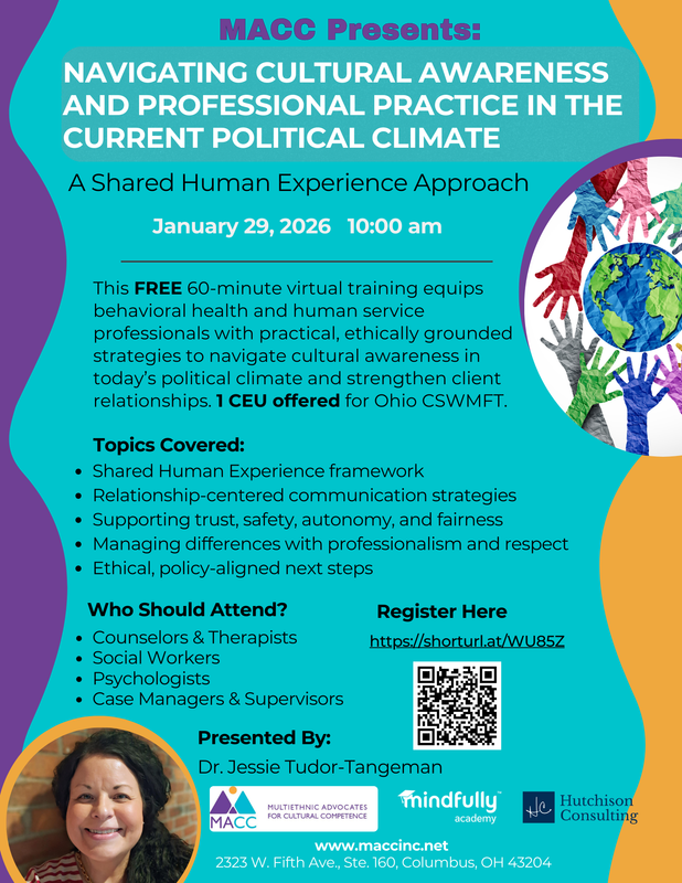 A 60-minute CE training for behavioral health professionals on culturally responsive, ethical client engagement using a shared human experience lens—practical strategies to build trust and maintain boundaries within ethics, scope, and policy.